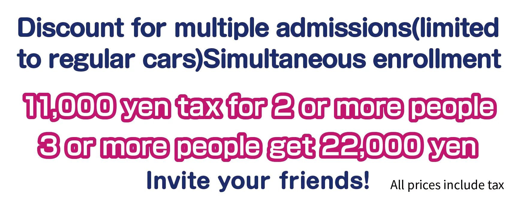 For two people we offer a 10,000 yen discount, and for three or more people enrolling at the same time we offer a 20,000 yen discount.