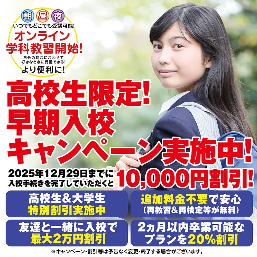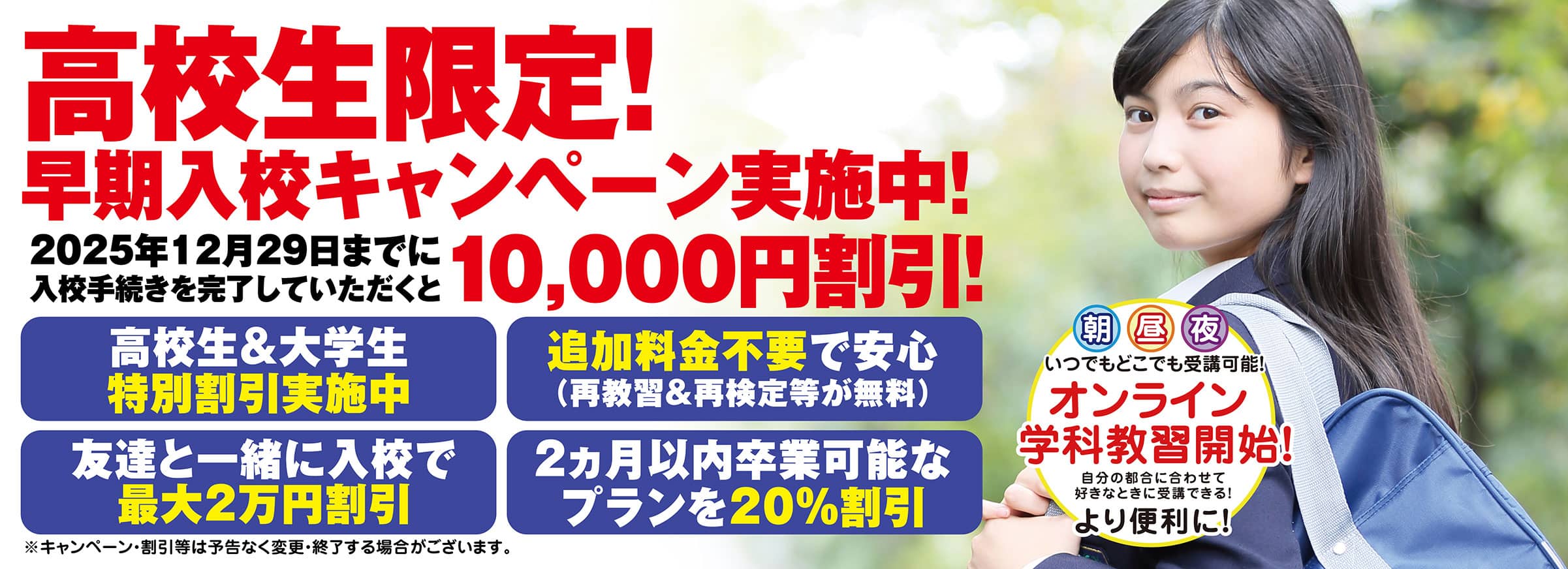 当校で一番安い価格でご提供!また友達・同級生を誘って入校すると